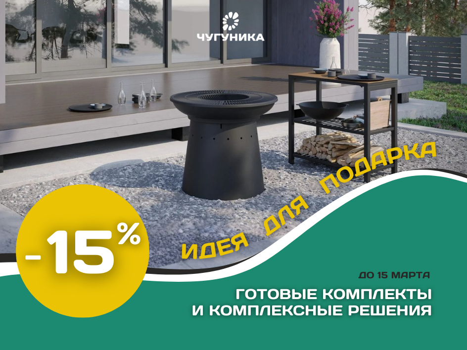 Только до 15 марта включительно действует выгодная акция: минус 15% на все готовые комплекты костровых чаш и комплексные решения для вашей зоны отдыха.